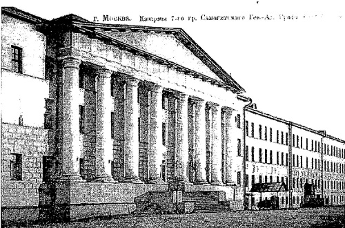 Позволю себе опять сугубо личное отступление в связи с Покровскими казармами. Мне рассказывали, что в 1910 году здесь венчались мои родители. В 1970-е годы, работая поблизости, я нередко в обеденный перерыв закусывал тут в госснабовском буфете[23]. Как-то, работая в архиве, на старых планах посмотрел: где же находилась казарменная церковь? И оторопел: точь-в-точь на месте нынешнего буфета. Вот здесь у амвона стояли молодой, в черной визитке отец и юная мама в белой фате и подвенечном платье. А ныне на этом знаменательном для нашего рода месте я, уже немолодой и потертый мужчина, прямой результат этого венчания, покупаю у толстой тёти Дуси сардельки и чай с сочником. Никак не могу представить себе это место в 1910 году, как и они, давно ушедшие из жизни, не могли бы вообразить себе здесь своего отпрыска 60 лет спустя. Да, странное совпадение: поистине всё возвращается на круги своя. Но нередко в весьма прозаическом варианте.