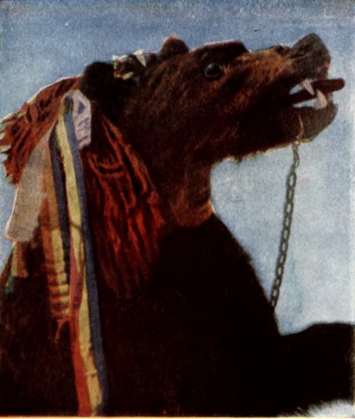 Специфичной для чехов, словаков, поляков была маска медведя. Сцена его смерти и оживания изображалась, как и в упомянутых выше обрядах о туроне и козе. Вместе со своим поводырем (им часто был ряженый «еврей») медведь показывал разные забавные фокусы. Обычно был он обмотан стеблями гороха, иногда покрыт медвежьей шкурой. Такие же ряженые медведем выступали в рождественско-новогодних представлениях восточных славян, немцев, народов Прибалтики и Скандинавии.[704]