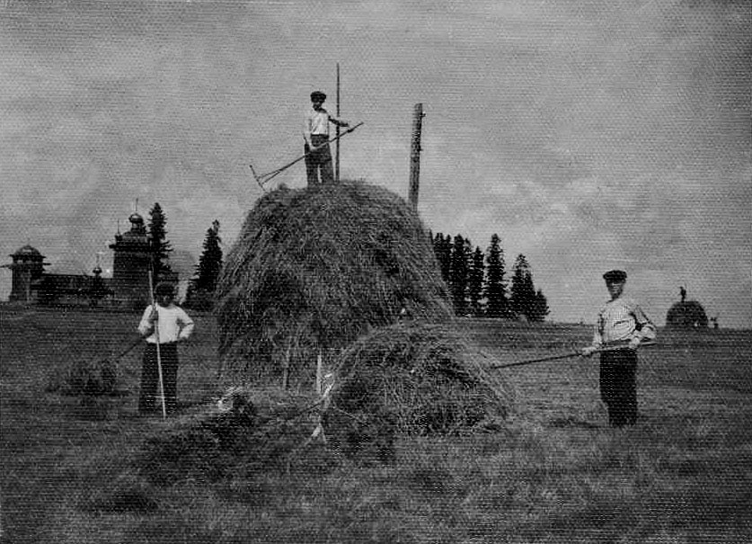 Сенокос на Ильинском Водлозерском погосте. Фото А. В. Ополовникова 1947 г. Из личного архива Н. В. Червяковой