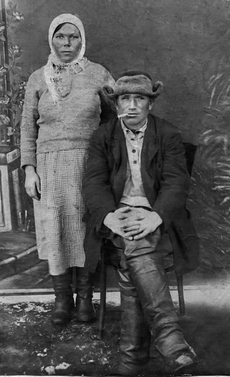 Знаменитый охотник, рыбак и лодочник Осипов с супругой (д. Колгостров). Из семейного архива Осиповых