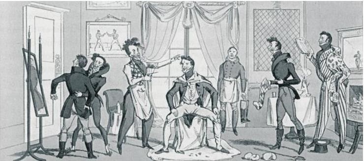 «La toilette: Лубин одевается». Из серии У. Хита «Мода и безумства». Ок. 1822.