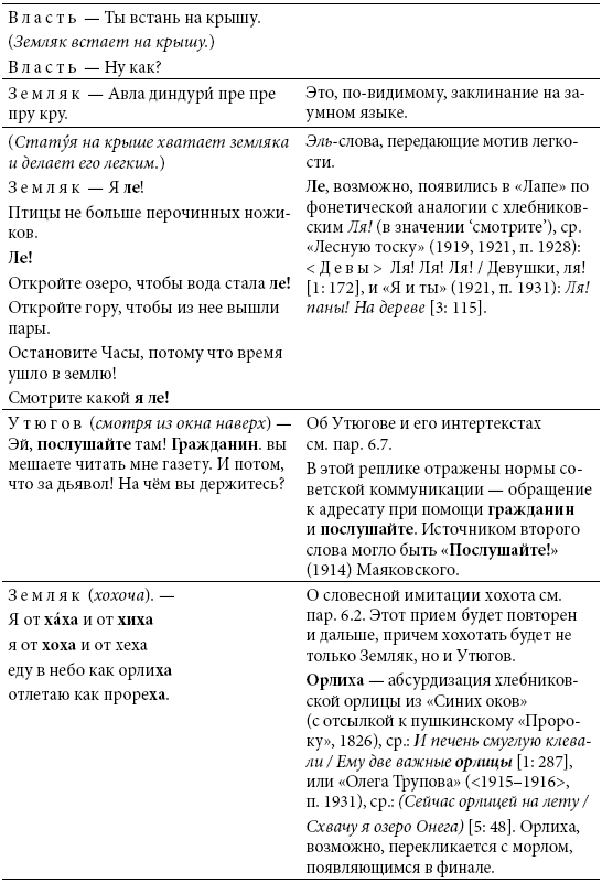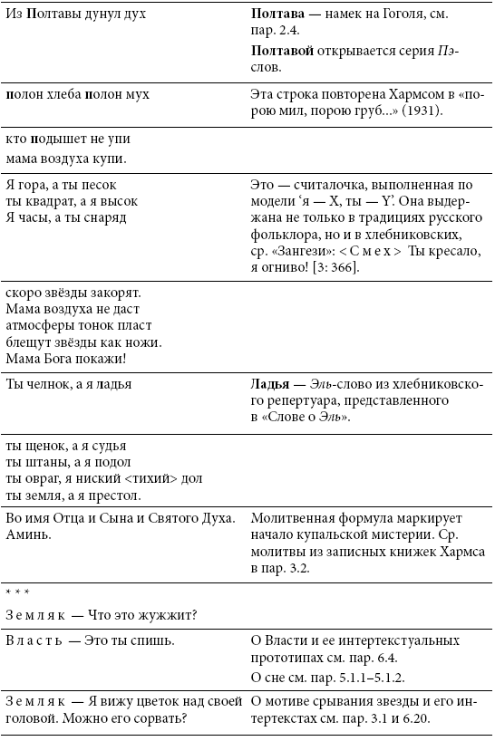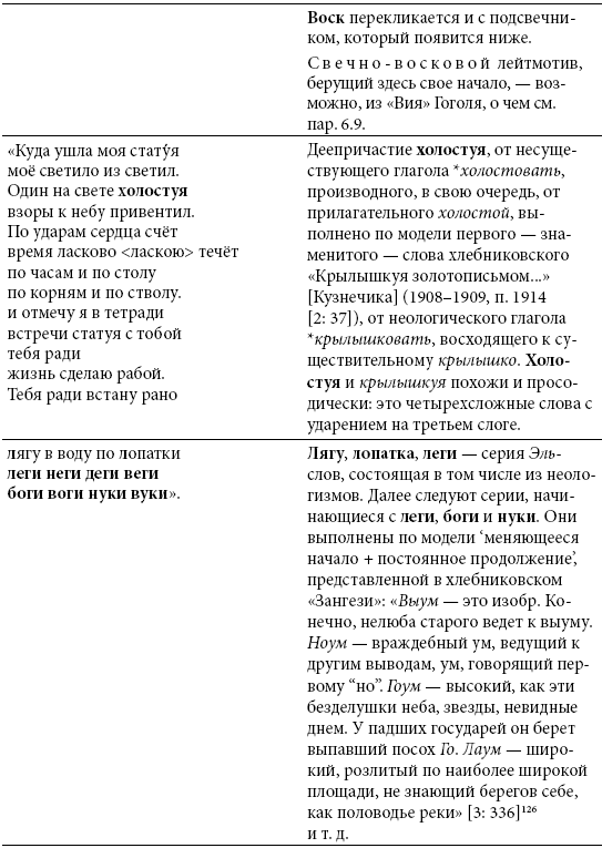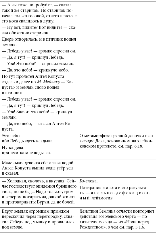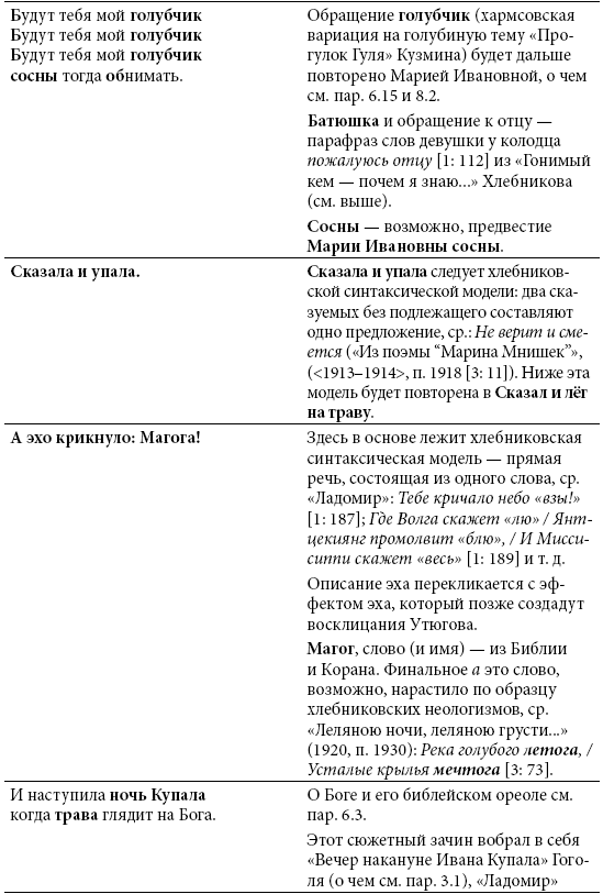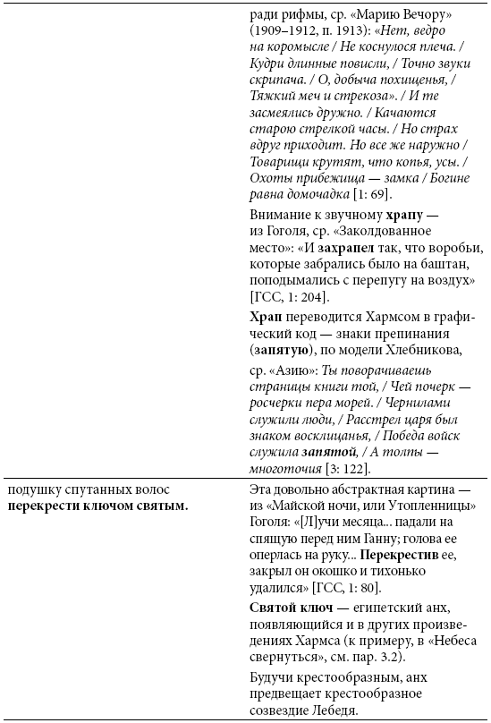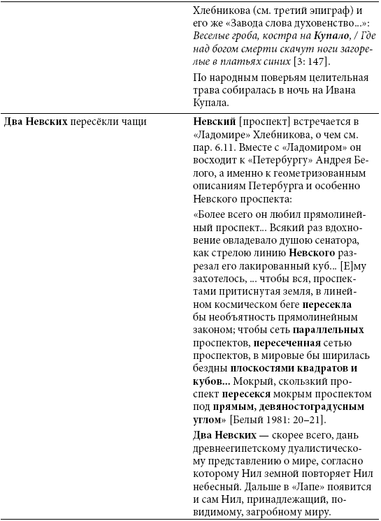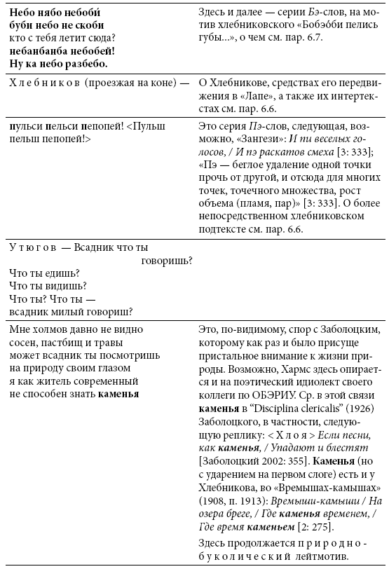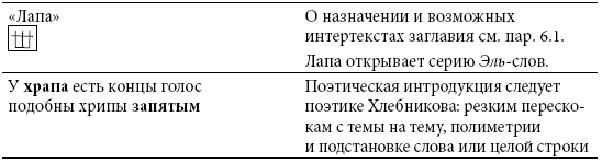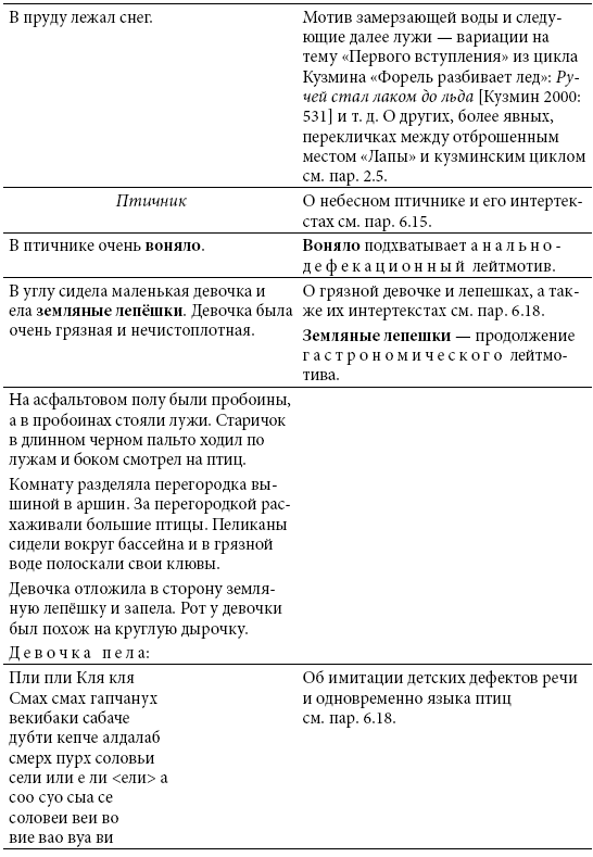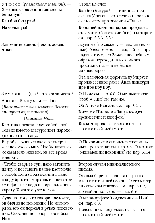 Чтобы проиллюстрировать пэтчворк более полно, далее в этом разделе все источники «Лапы», включая языковые (а им до сих пор было уделено мало внимания), будут рассмотрены в формате построчного комментария. В комментарии также будут отмечаться лексические и образные переклички между отдельными частями текста, включая лейтмотивы второго порядка: