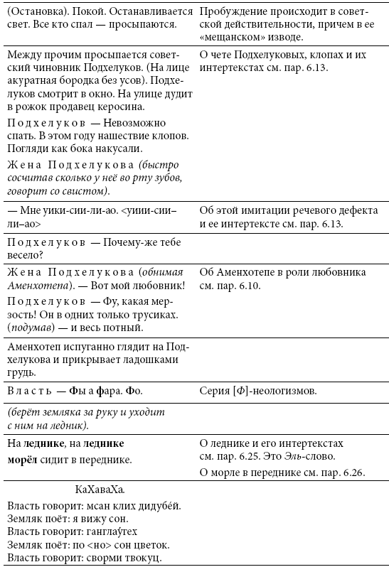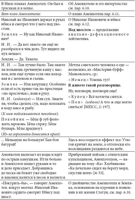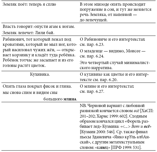 Не могу не признаться, что довольно сырое произведение, каковым при ближайшем рассмотрении оказалась «Лапа», плохо поддается герменевтическим операциям. Объясняется это тем, что художественный текст без точно выверенного авторского расчета едва ли может быть адекватно расчленен на атомарные частицы, а затем смоделирован заново. Вообще, при анализе таких произведений, как авангардная «Лапа», невозможно избежать разного рода погрешностей. Одна из возможных погрешностей – та, что проделанный в этой главе интертекстуальный анализ придал «Лапе» больше связности и смысла, чем в нее заложено автором.