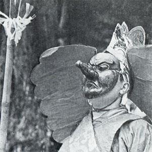 Маска мифологического принца Сарудахико, который, по преданию, привел потомков богини солнца Аматэрасу на землю