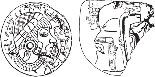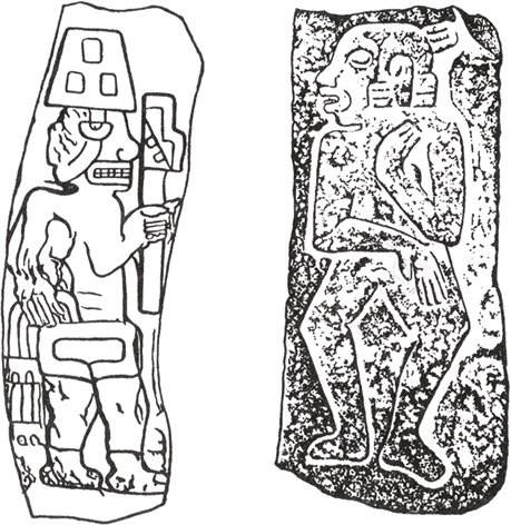 Рис. 32–33. Слева: изображение, относящееся к культуре Чавин на севере Перу; справа: барельеф «Танцующие», Монте Альбан, Южная Мексика