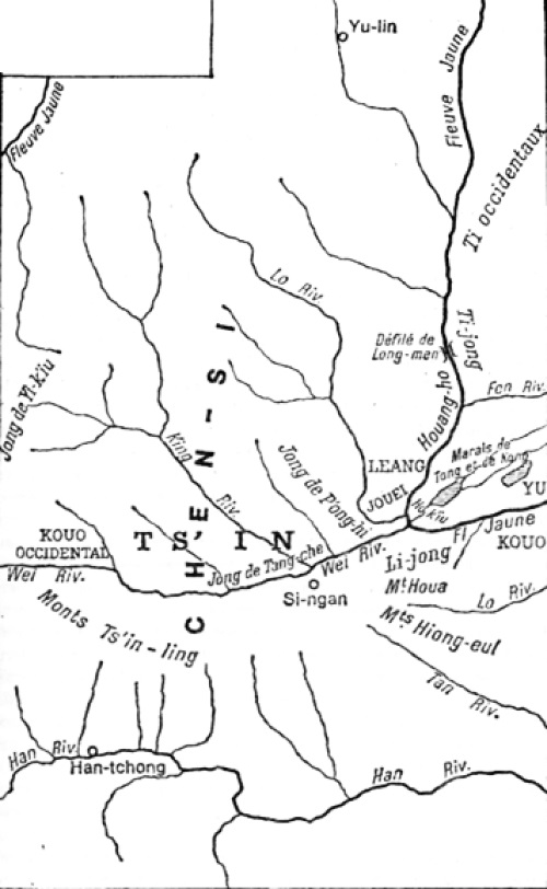 Первые шаги Цинь были едва заметны. Это было маленькое княжество, укрепившееся в среднем Шэньси на берегах Вэй. Окруженное со всех сторон варварами, оно оказалось перед угрозой: князья Цзинь взяли его в клещи, сжимавшиеся с северо-востока и юго-запада. Довольно быстро ему удалось разжать эти клещи. Это случилось после того, как Цинь, повоевав с жунами из Танши в 714 г. и Пэнси в 697 г. и аннексировав в 687 г. небольшое княжество Го (западное Го), проложило себе коридор к большой излучине Реки (Хэцюй) и срединным княжествам Хэнани. Отныне для Цзинь стало трудно обойти Цинь с юго-востока даже при содействии лижунов. В 677 г. Цинь завязало отношения с уделами Лян и Жуй на запад от Хуанхэ. Оно завоевало земли жунов из Маоцзинь и поставило под контроль важный паром через Реку в Мао, а затем в 640 г. покорило Лян. Это продвижение на северо-запад вдоль Хуанхэ терпеливо подкреплялось деятельностью по проникновению в верхние долины рек Цзин и Ло. В 444 г. победа над жунами и ицю открыла перед Цинь доступ в Ганьсу и верхнее Шэньси. С конца IV в. исчезла опасность быть обойденным княжеством Цзинь с северо-запада.