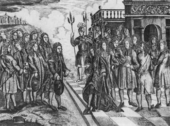 Проводы Б. П. Шереметева на Мальте после посвящения его в рыцари 9 мая 1698 г., Гравюра конца XVII в.