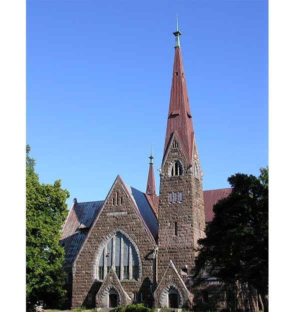Для облицовки церкви зодчий решил применить темно-серый гранит. Хотя общие чертежи здания, сделанные Й. Стенбеком, впоследствии бесследно исчезли, можно с уверенностью сказать, что он с самого начала ориентировался в своем проекте на стиль «модерн». Постройка, датируемая 1904 годом, выглядела несколько строже, чем культовые сооружения в Койвисто и Муурувеси. Архитектор отказался от излишних декоративных элементов, чтобы максимально полно сосредоточиться на выразительных возможностях естественного материала. Асимметричное в плане, здание вышло более пластичным по своей объемной моделировке, а двойное завершение угловой башни в чем-то придало ему сходство с северным деревянным зодчеством.