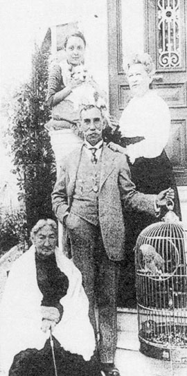 Израильский исследователь А.Я. Черняк задался вопросом: каковы были финансовые возможности эмигранта Грулёва? Сославшись на историка П.А. Зайончковского, он указал, что в 1898 году пенсия генерал-лейтенанта Российской армии составляла 2858 рублей в год, а это, учитывая высокую покупательскую способность тогдашнего рубля, было довольно солидной суммой. Однако именно с 1912 года размер пенсий увеличен, они исчисляются не только из окладов жалования, но и от столовых и добавочных денег (а одни только столовые деньги начислялись в то время: начальнику дивизии – 6000 рублей, а бригадному командиру – 4000 рублей в год). При определении пенсий учитывались участие в военных действиях, боевые ранения, ордена и награды, срок службы (военные, прослужившие более 25 лет, получали пенсию в размере своего полного оклада). По особым правилам назначалась пенсия увольняемым в отставку по болезни (так что прошение об отставке по болезни Грулёва было неслучайным). Не упустил сей исследователь и такой источник дохода Михаила Владимировича, как литературные гонорары, в том числе за переводы его сочинений на иностранные языки. И хотя мы не располагаем даже приблизительными данными о размерах оплаты всех его трудов, надо думать, что отставной генерал обеспечил своей семье за границей вполне безбедную жизнь. Показательна семейная фотография Грулёвых с Лазурного берега. Наш герой запечатлен здесь вместе с престарелой матерью, женой и дочерью на пороге внушительного дома с инкрустированной дверью. Он одет с иголочки в респектабельную пиджачную тройку с крахмальной рубашкой и галстуком, с золотыми часами на цепочке. Держится вальяжно, запустив руку в карман, а другой опирается на клетку с экзотическим попугаем, – чем не символ достатка и преуспеяния?
