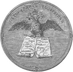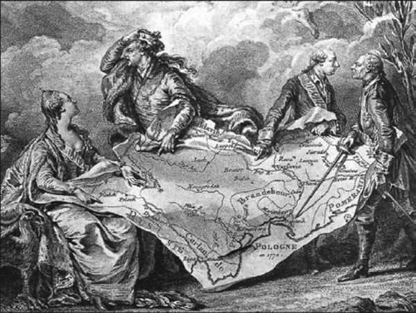 В 1793 г. после второго раздела Польши в России была отлита медаль в память об этом событии. На ее лицевой стороне изображена императрица Екатерина II, а на реверсе – двуглавый орел, держащий в каждой лапе по карте присоединенных территорий. На одной из них дата первого раздела Польши – 1772 г., на другой – второго, 1793 г. Орла венчает надпись: «Отторженная возвратах».