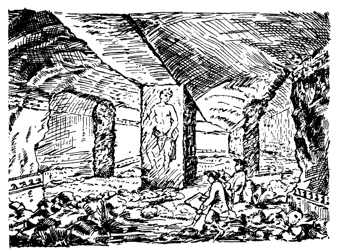 Раскопки "Склепа Тифона" в тарквиниях. Гравюра XVIII в.
