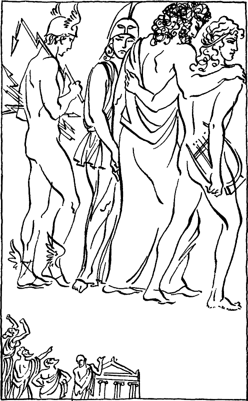Но самым несчастным среди богов чувствует себя Гермес, который буквально разрывается на части, чтобы выполнять свои весьма разнообразные обязанности: «Лишь только встану поутру, сейчас надо идти выметать столовую. Едва успею привести в порядок места для возлежания… нужно являться к Зевсу и разносить по земле его приказания, бегая без устали туда и обратно; только это кончится, я, весь еще в пыли, уже должен подавать на стол амброзию… И ужаснее всего то, что я, единственный из всех богов, по ночам не сплю, а должен водить к Плутону умерших, должен быть проводником покойников и присутствовать на подземном суде».