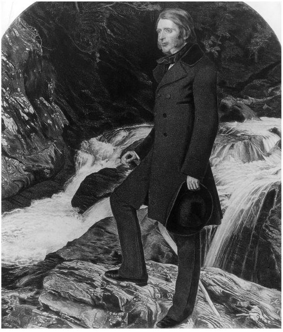 Английский мыслитель пробирается среди бурных ручьев и диких скал; его костюм составляет рациональный визуальный контраст хаотическим формам природы, среди которых он, проходя мимо, устанавливает порядок.