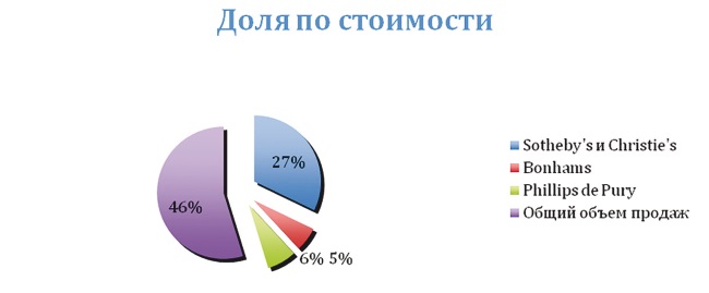 Что касается аукционных домов, то здесь, разумеется, доминируют Sotheby’s и Christie’s – их доля по стоимости в сумме составляет 27 %[122] всех аукционных продаж в мире (за ними следуют Bonhams (5 %)[123] и Phillips de Pury (6 %)[124] и 46 % общего объема продаж10.