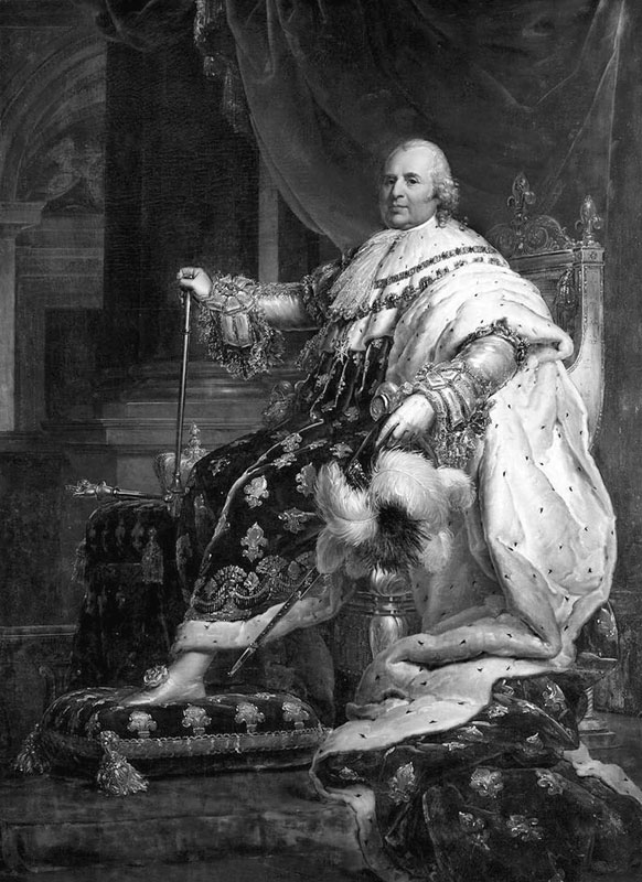 Людовик XVIII (Луи-Станислас-Ксавье; 1755–1824 гг.) – король Франции в 1814–1824 гг. (с перерывом в 1815 г.), брат Людовика XVI. Занял престол в результате Реставрации Бурбонов, последовавшей за свержением Наполеона I