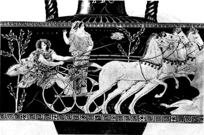 Пелопс и Гипподамия на колеснице. Рисунок на аттической краснофигурной амфоре.