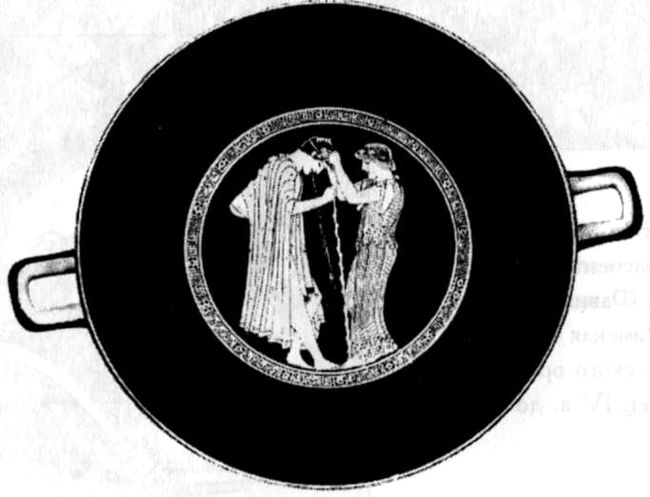 Об этой любопытной особенности греческой вазовой живописи позволяет судить, например, прелестная жанровая сценка, украшающая краснофигурный килик начала V в. до н. э., вышедший из мастерской известного афинского керамиста Брига. Художник выбрал для этой сцены, казалось бы, крайне неэстетичный сюжет, изобразив юного афинского щеголя в состоянии тяжелого похмелья после недавней попойки. Опираясь на свой длинный посох, молодой человек извергает наземь все выпитое и съеденное, в то время как девушка с коротко подстриженными светлыми волосами (возможно, рабыня или гетера) заботливо поддерживает обеими руками его голову, явно стараясь облегчить ему эту неприятную процедуру. Возьмись за такой сюжет какой-нибудь малый голландец вроде Ван Остаде или русский передвижник, и у него, наверняка, получилось бы что-нибудь крайне неаппетитное и отталкивающее. Греческий мастер превратил этот, казалось бы, чисто физиологический казус в маленькое чудо художественной гармонии, пронизанное тонким юмором и глубокой человечностью. Эстетический секрет этой метаморфозы довольно прост: изящные силуэты юноши и девушки, уверенно вписанные в круглую рамку килика, строгая экономия художественных средств (никаких лишних подробностей бытового или физиологического плана), вполне стереотипный условно миловидный облик действующих лиц, без сколько-нибудь существенных изменений повторяющийся во множестве сцен самого разнообразного характера, и при этом их очень точно схваченные душевные движения и отношение друг к другу (явно угнетенное состояние юноши и нежная заботливость девушки) — все это вместе взятое создает впечатление изысканной непринужденности и блестящего графического артистизма этого маленького шедевра греческой вазописи.