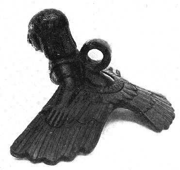 баини выполнены очень искусно. Обычай украшать бронзовые котлы головами быков получил в Урарту широкое распространение. Наряду с ними встречаются также украшения в виде крылатых птиц с женскими головами. Все эти вещи иногда монтировались из отдельно отлитых частей, зачастую даже из бронзы неодинакового состава и цвета. Подобные украшения котлов встречаются на очень [96] большом пространстве от Италии и Греции до стран Передней Азии. Хотя стилистически западные и восточные фигурки имеют различные черты, однако археологи сходятся на той точке зрения, что они все же происходят из Передней Азии, правда, из разных центров, одним из которых было Урарту[7].