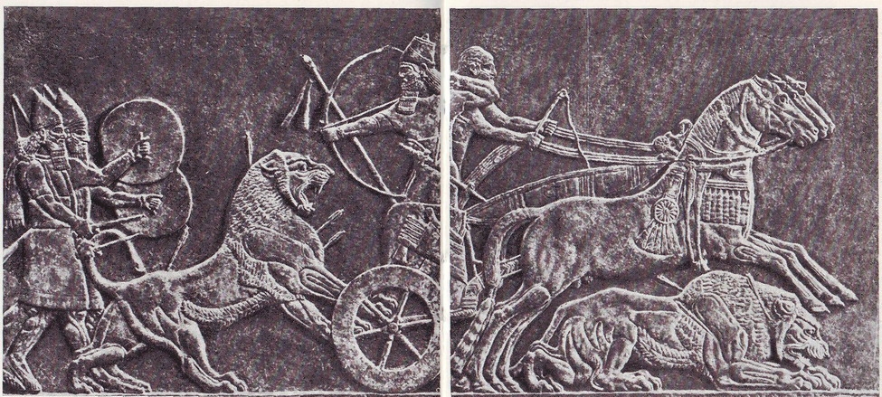 40. Охота на львов. Рельеф из дворца Ашшурнасирпала. IX в. до н. э.
