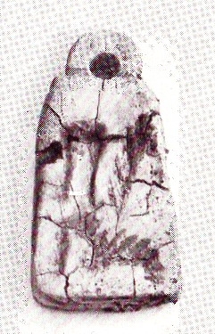 На Кармир-блуре же найдены три статуэтки из глины. Они сделаны грубо и схематично, черты лица проработаны слабо, на грудь спускается борода. У двух из них головы и спины покрыты рыбьей кожей, и голова рыбы является их головным убором. Они были раскрашены яркой голубой краской, которая сразу поблекла на солнце. Обе эти [103] статуэтки нашли около жертвенника в кладовой - очевидно, это были боги-охранители. Их значение можно объяснить только связью с мифологией Ассирии и Вавилонии, где почитался бог воды и океана Эа. Боги, с ним связанные, носили одеяния рыб и имели магическое значение[12].