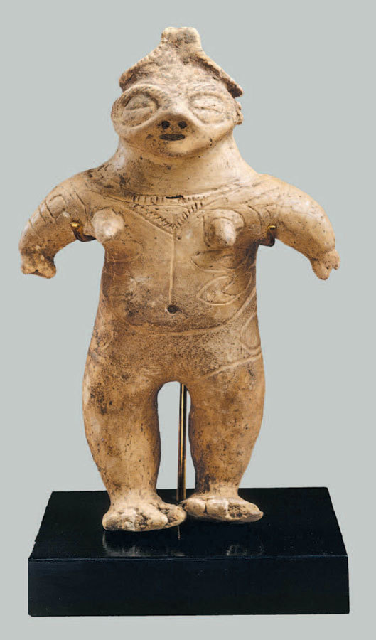 Эти антропоморфные статуэтки — с сердечкообразными лицами, большими насекомьими глазами или без глаз вовсе, открытыми в безмолвном крике ртами, подобием пирсинга в ушах и особым орнаментом (возможно, татуировками) на теле — обладают андрогинными чертами, то есть одновременно имеют и мужские, и женские признаки. Многие фигурки имеют едва наметившиеся груди, а горизонтальные полоски в центральной части тела, по мнению исследователей, можно считать стилизованным и значительно упрощенным изображением фаллоса. Иногда статуэток зооморфные черты, которые представляют полулюдей-полузверей.