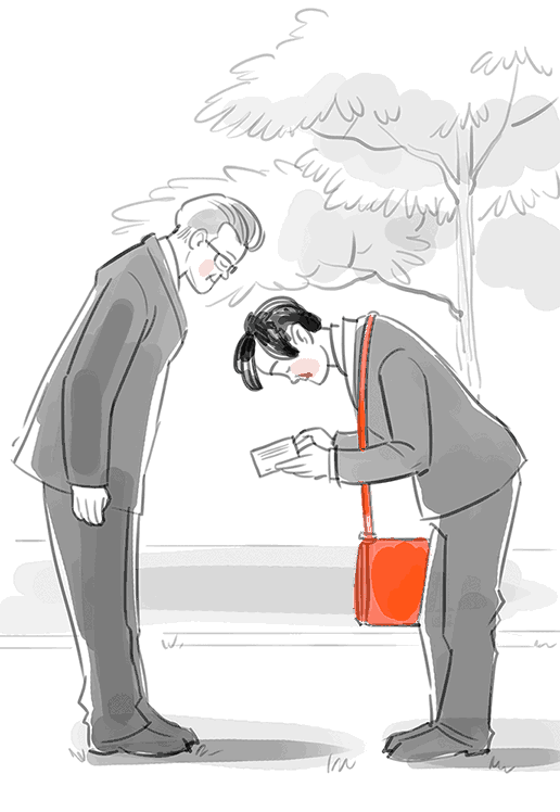 Если окажется, что у вашего нового знакомого более низкая должность, чем у вас — можете расслабиться и ограничиться легким кивком, а вот если наоборот — готовьтесь к земным поклонам.