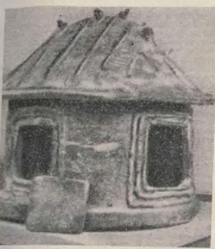 В этрусских захоронениях встречаются также урны, по виду напоминающие дома или хижины. Одни — более ранние — имеют двухскатную крышку, в которой у более поздних, например у известной каменной урны из Клузия, сделано отверстие. Такое же отверстие встречается на некоторых склепах. Это не что иное, как копия окна в крыше жилища, через которое в центральное помещение проникал свет и стекала дождевая вода в бассейн, устроенный в полу. Конструкция крыши с отверстием в ней была не простой, ее подсказал, очевидно, многолетний опыт. Этруски, ценившие воду, сумели найти оптимальное решение, которое заимствовали и римляне.