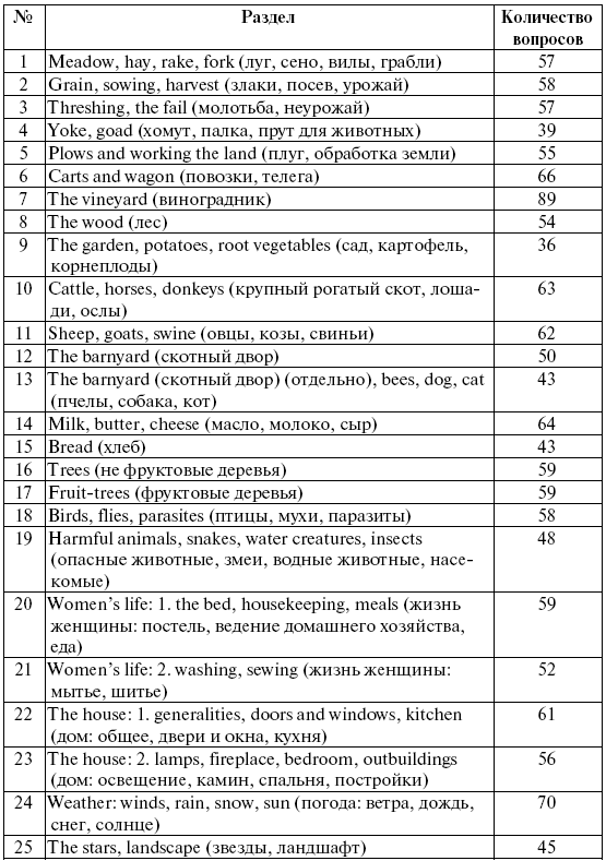 Большинство анкетирований, проводимых как по почте, так и при помощи специалиста, делятся на части; некоторые из них специально предназначены для женщин и мужчин. Немецко-швейцарский лингвистический атлас составлен на основе отбора информантов по этому критерию: «Мужчины и женщины дают ответы на диалекте своей местности: мужчины отвечают на вопросы, связанные с мужской деятельностью, а женщины – на вопросы, относящиеся к женским занятиям»8 [Pop 1950, 770]. Особенность немецко-швейцарского интервью состояла в опросе равного числа мужчин и женщин, но необходимо отметить четкое разделение вопросов на мужские и женские. Это, по-видимому, отражает отношение диалектологов к лексикону. Цель традиционной диалектологии – установить «как называется стул на трех ножках для дойки молока в нескольких сотнях разных мест» [McIntosh 1952, 70]. Многие диалектологи полагали, что различие мужского и женского лексиконов отображает их разные социальные роли. Макинтош отмечает: