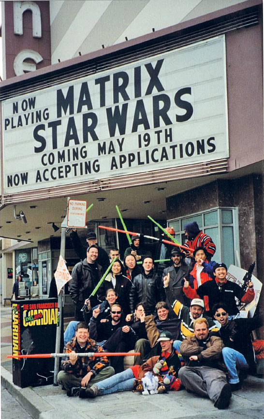 На этот раз фанаты прибыли к «Коронету» заранее, более чем за месяц до первого сеанса, назначенного на 19 мая 1999 года. Они прибыли отовсюду. Крис Гиунта переехал из Мэриленда в Сан-Франциско со своей девушкой – Бет – специально для того, чтобы посмотреть «Эпизод I» в знаменитом среди фанатов кинотеатре «Коронет», эпицентре феномена «Звездных войн», где Джордж Лукас любил устраивать показы. Гиунта устроился на работу в Bank of America мастером по ремонту банкоматов и сказал своему начальнику, что возьмет отпуск на бо?льшую часть апреля и мая 1999-го. Когда босс узнал причину, то посмеялся, а затем спросил: «Можешь мне достать билет?»